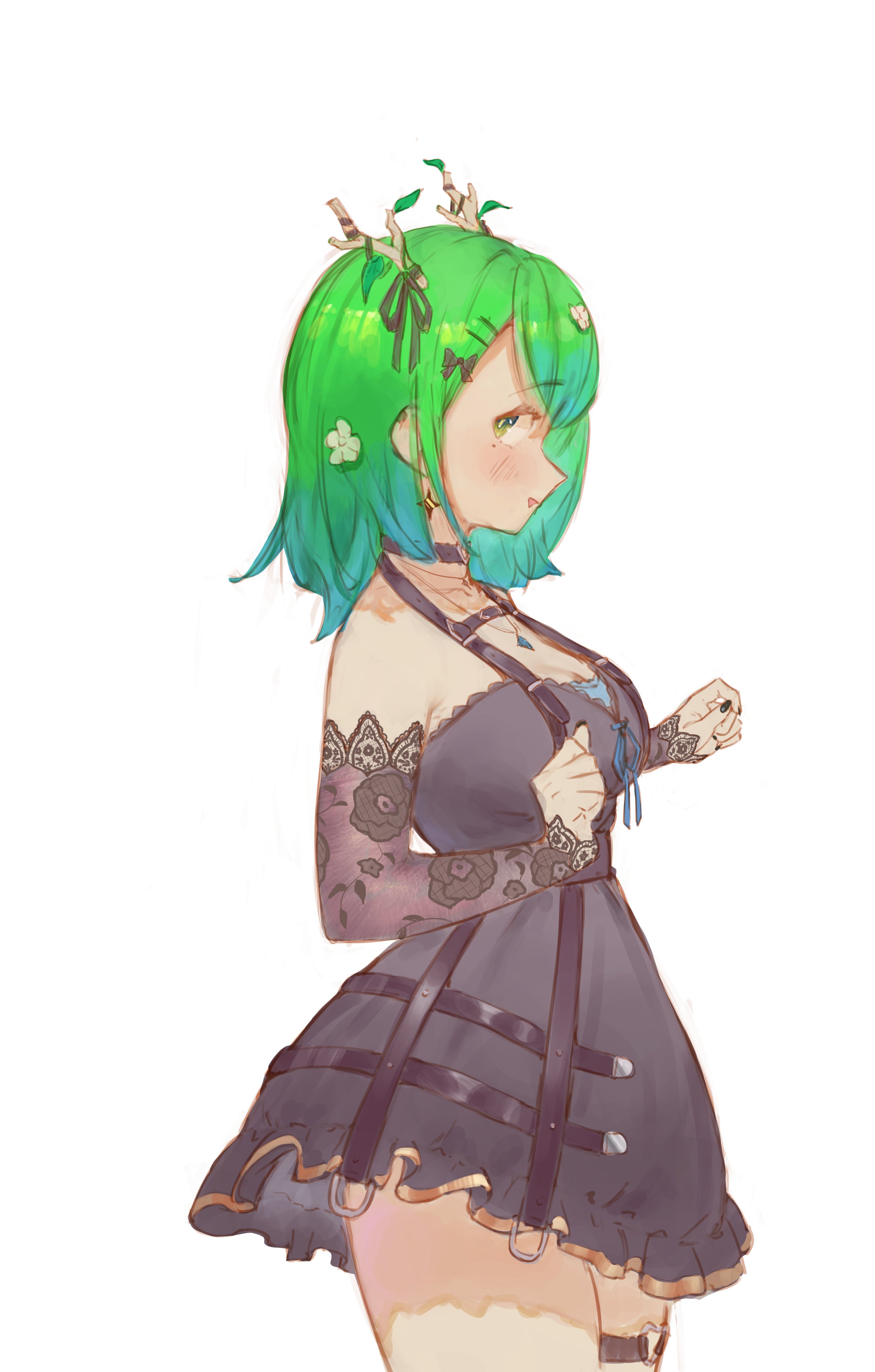 sutein, original, 1girl, blush, bottomless, female focus, flat chest, green eyes, green hair, hat, long hair, matching hair/eyes, navel, nipple slip, nipples, no panties, side ponytail, sitting, solo, staff, tank top, thighhighs, torn clothes, witch hat, wizard