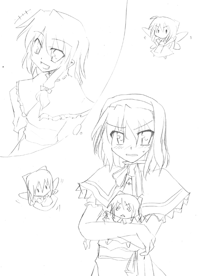 sanemichi hajime, umihara kawase (character), umihara kawase, lowres, 1girl, breasts, brown hair, female focus, fishing, large breasts, oekaki, sleeves rolled up, solo