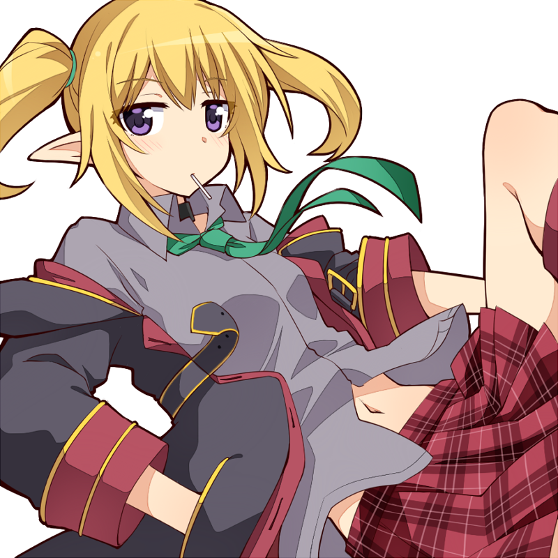 kamia (not found), matsuoka kiyone, original, 1girl, blonde hair, female focus, long hair, one eye closed, red eyes, shirt, solo, t-shirt, twintails, wink
