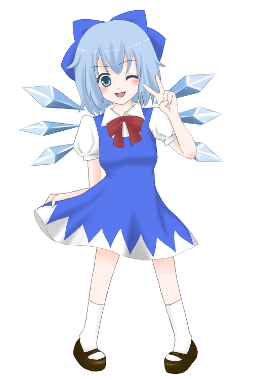 1girlblue eyesblue hairbrown shoesfemale focusmatching hair/eyesone eye closedpigeon-toedribbonshoesshort hairskirt holdsockssolowhite sockswingswink