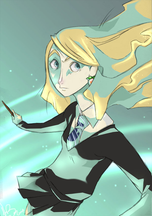 1girlblonde hairblue eyesearringsfemale focusjewelrylong hairnecktieschool uniformsignaturesolowand