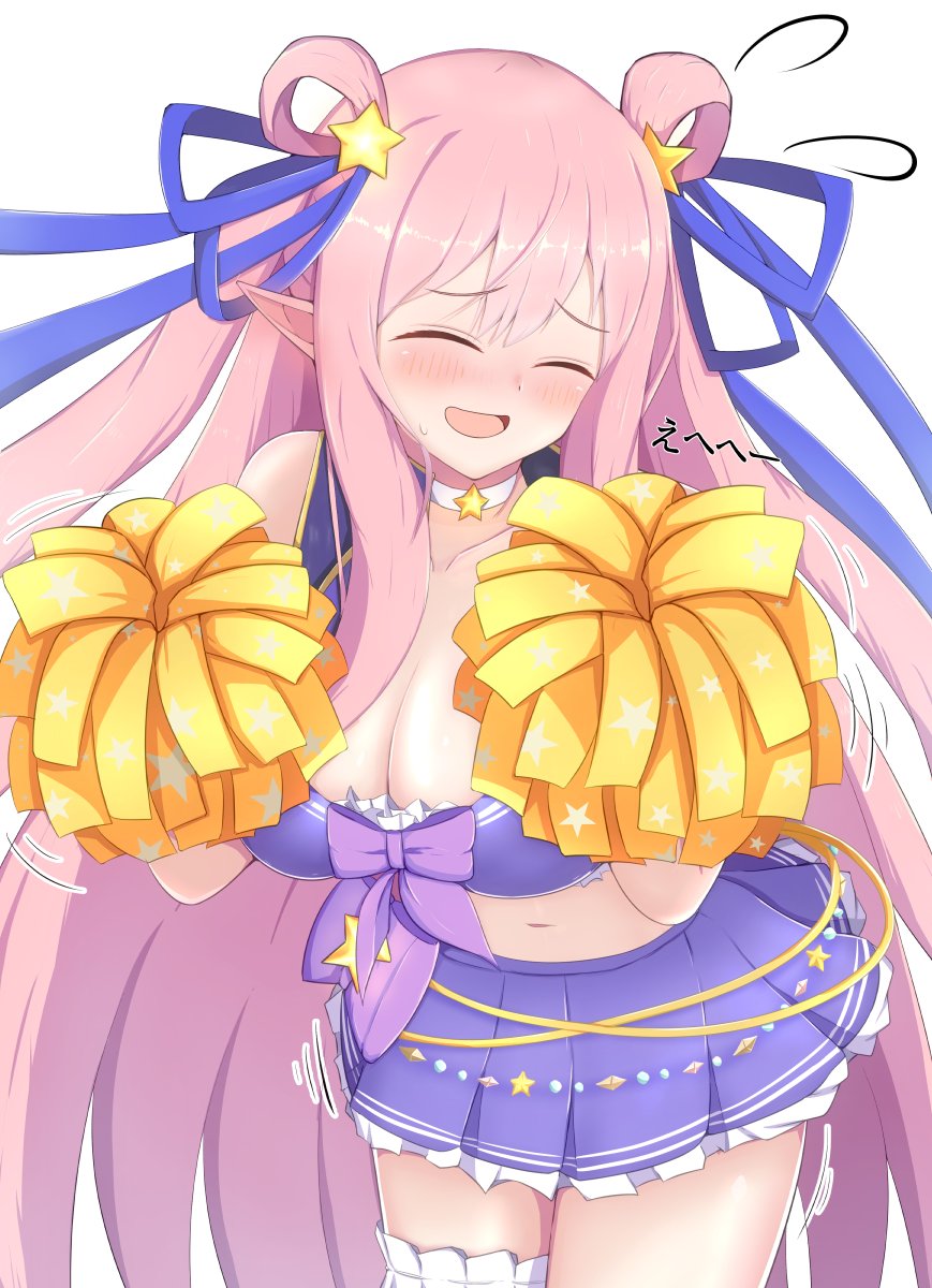 1girlbikiniblue ribbonblushbowbow bikinibreastschokercleavageclosed eyescollarbonecowboy shotflying sweatdropsfrillshair between eyeshair ornamenthair ribbonhair ringshands upholdingholding pom pomslapelslarge breastslong hairminiskirtnavelopen clothesopen mouthopen vestpink hairpleated skirtpointy earspom pom (cheerleading)pom pomspurple bikinipurple bowpurple skirtpurple vestribbonsidelockssimple backgroundskirtsmilesolostandingstar (symbol)star chokerstar hair ornamentswimsuitvery long hairvestwhite backgroundwhite choker