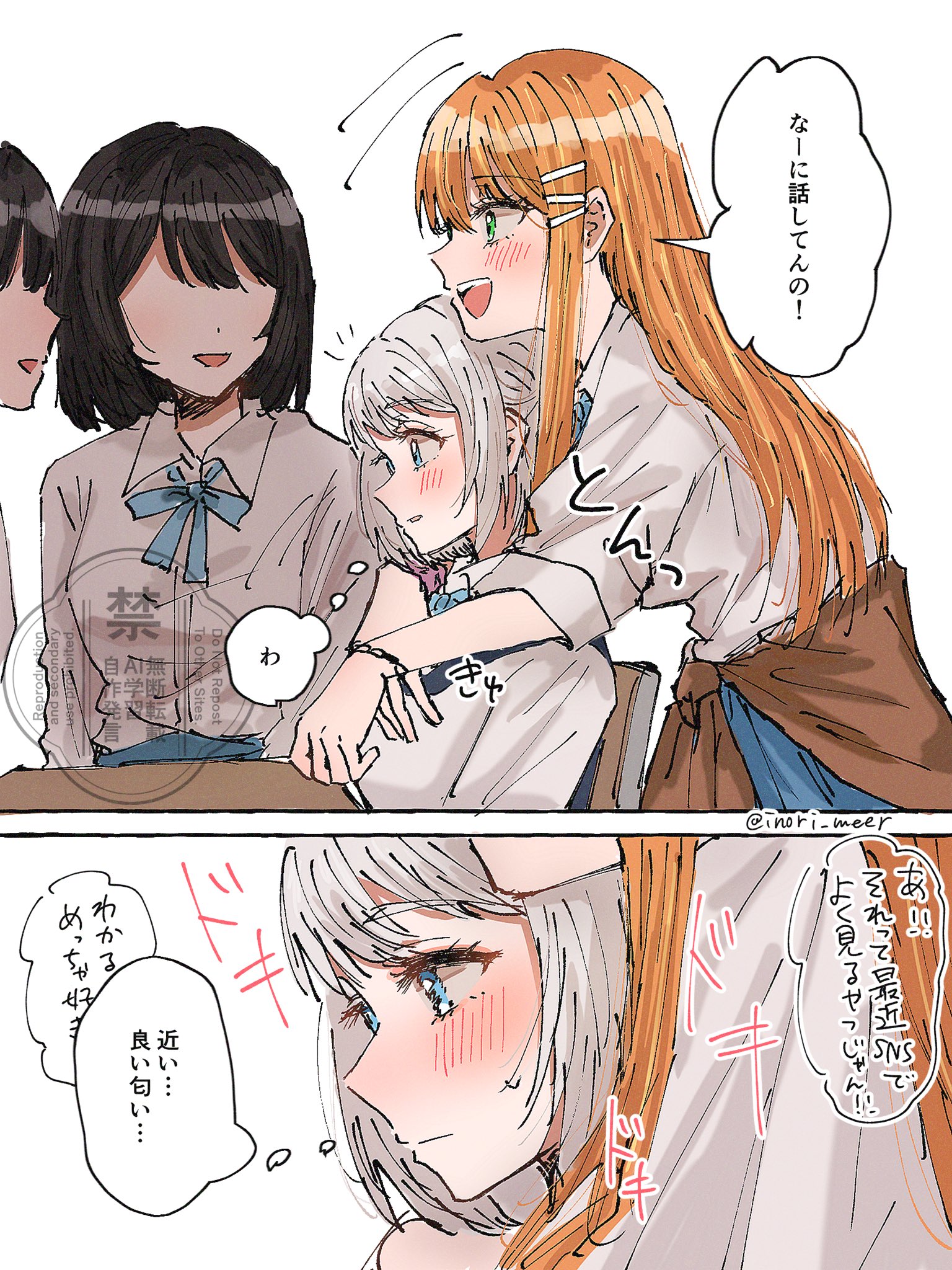 hanasakichu, shirakami fubuki, hololive, highres, 1girl, ahoge, animal ear fluff, animal ears, blush, earrings, fox ears, fox girl, green eyes, jewelry, long hair, looking at viewer, open mouth, shirt, sidelocks, skirt, solo, virtual youtuber, white hair