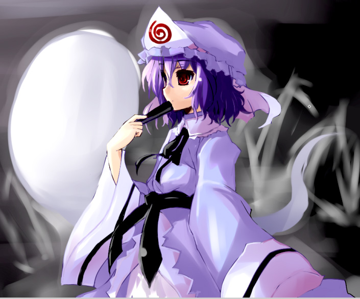 arayama reiichi, shameimaru aya, touhou, translated, 1girl, black hair, blush, breasts, covered erect nipples, female focus, gradient background, hat, large breasts, one-piece swimsuit, red eyes, school swimsuit, short hair, smile, solo, swimsuit