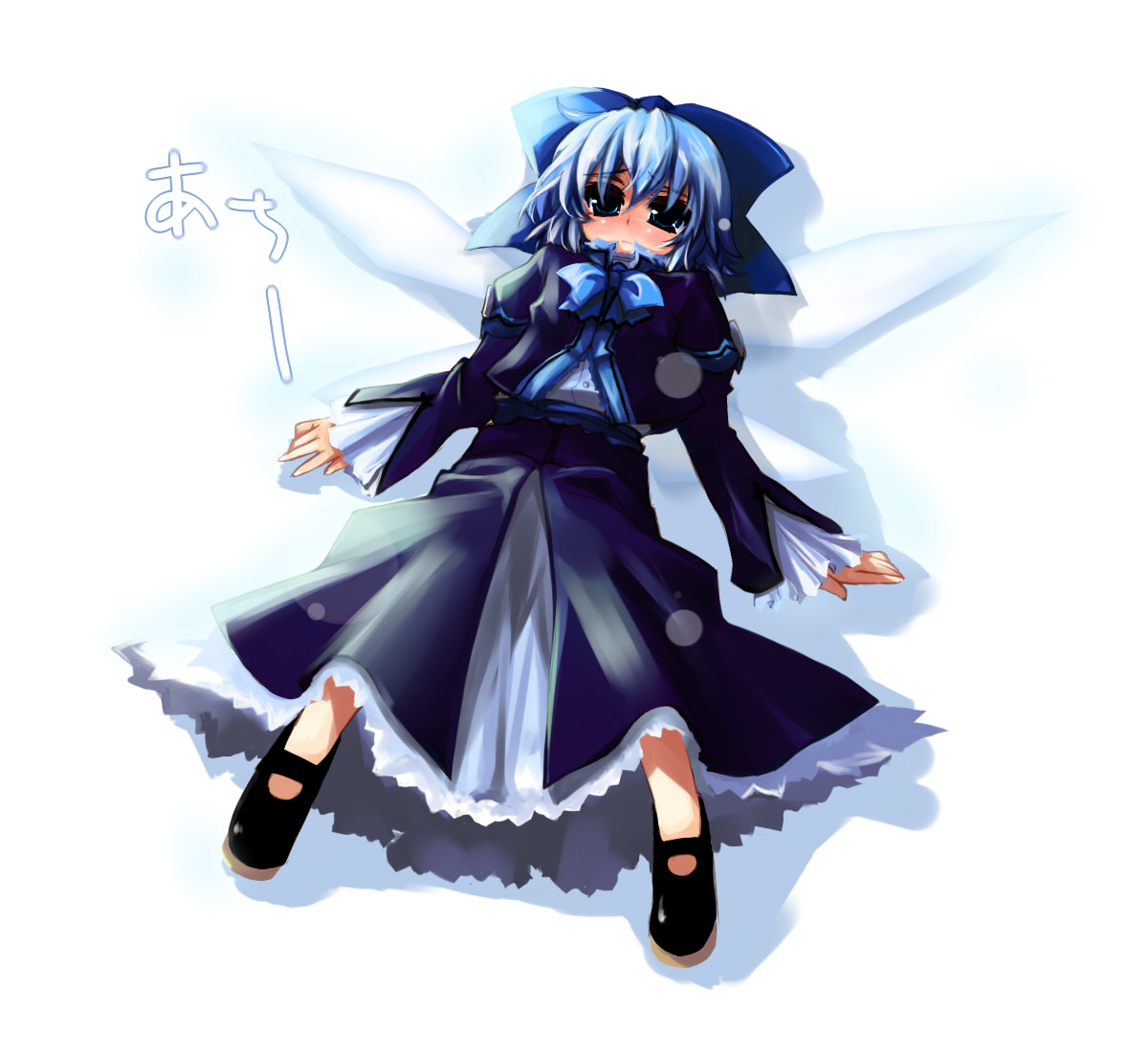 1girlblue eyesblue hairblushdressfemale focusfull bodygradient backgroundmatching hair/eyesribbonshort hairsolowhite backgroundwings