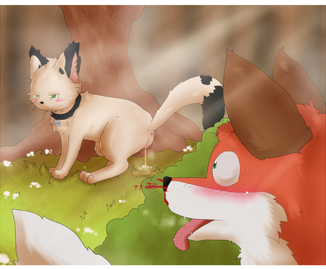 all foursambiguous genderanusblushcaninecollarfelinefemaleferalFlag for Deletionforestfoxfurfurry onlygrasshalf-closed eyesmammalno humansnosebleedoutsidepeeingplantpussysharp teethstandingteethtonguetongue outtreeurinewatchingwhiskerswood