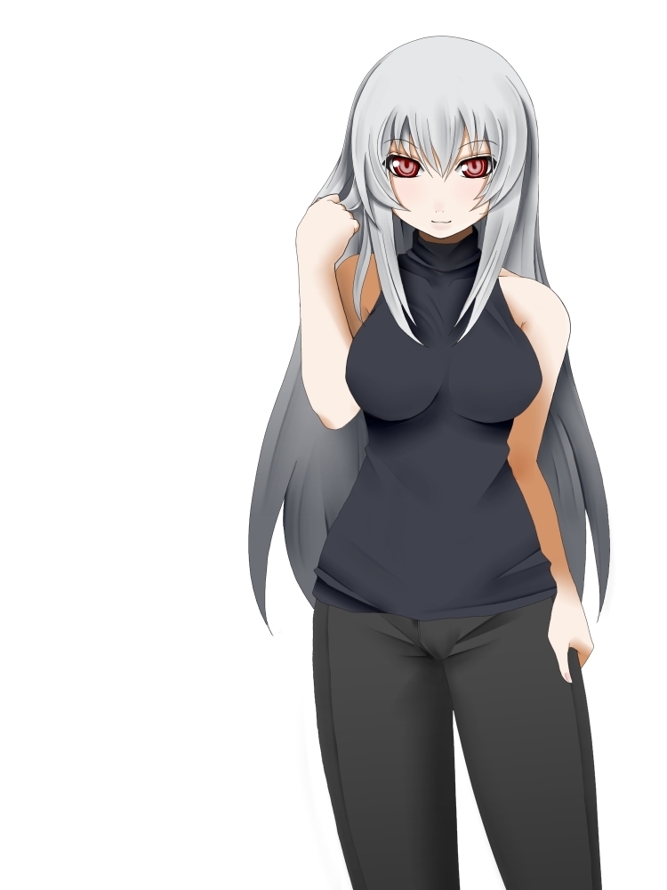 00saged upbare shouldershair fliplong hairred eyessleevelesssleeveless turtlenecksoloturtleneck