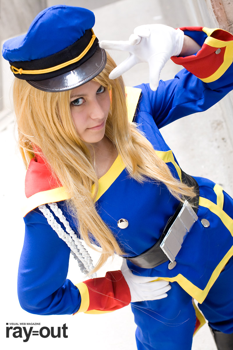 david huang, sumeragi aika, agent aika, aika (series), commentary, highres, traditional media, 1girl, artist name, blue eyes, breasts, brooch, brown hair, bustier, copyright name, crotch seam, detached collar, earrings, folded ponytail, jacket, jewelry, lipstick, looking at viewer, makeup, medium breasts, open mouth, panties, ponytail, red jacket, red skirt, skirt, smile, solo, standing, stun gun, twitter username, underwear, weapon, white panties