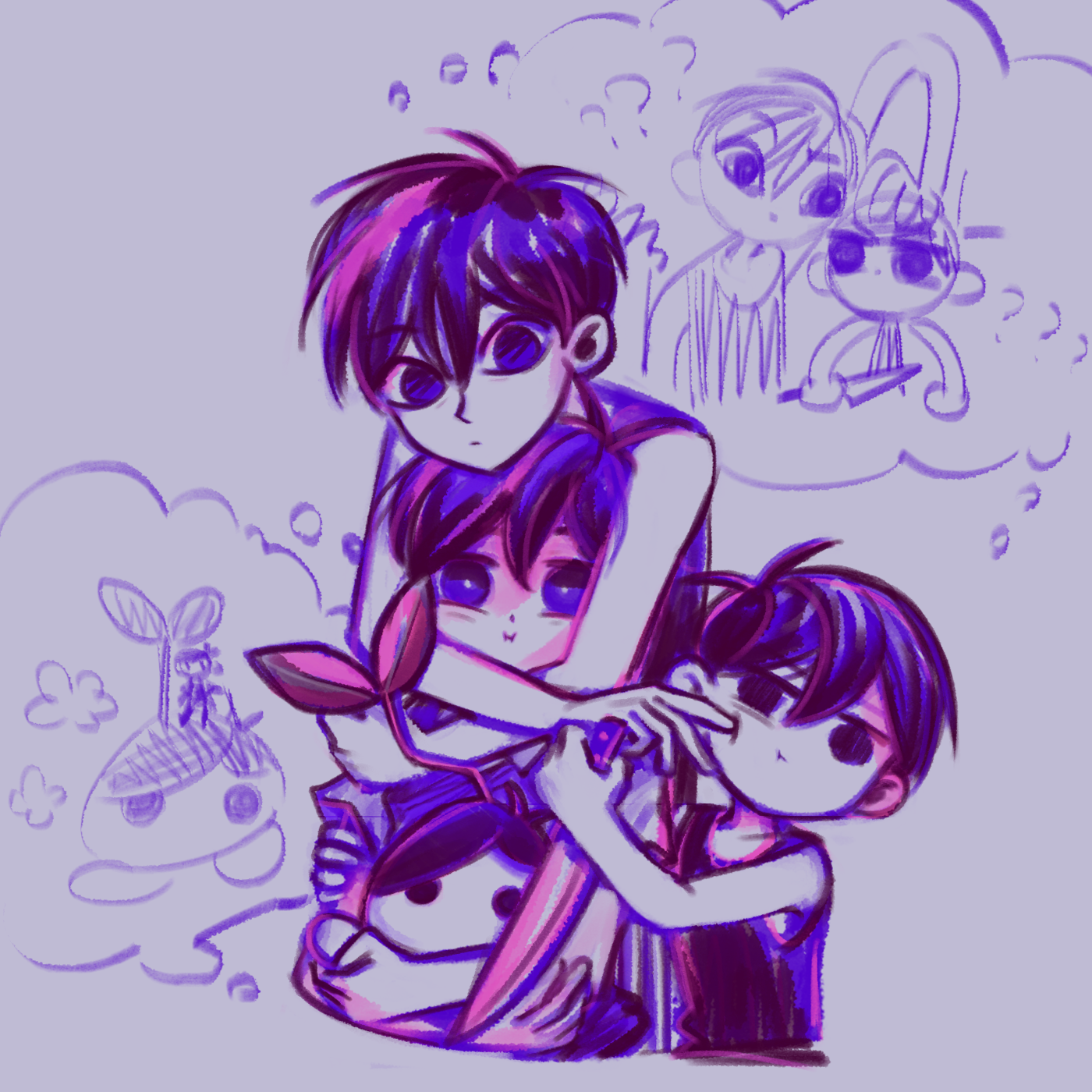 1boy3boysantenna hairblack eyesblack hairblack sweater vestblack tank topbright pupilscheek pokingclosed mouthcollarbonecollared shirtcolored skindual personaholdingholding knifeknifelooking at anothermale focusmultiple boysomoriboypokingshirtshort hairshort sleevesspeech bubblesweater vesttank topthought bubblewhite pupilswhite shirtwhite skin
