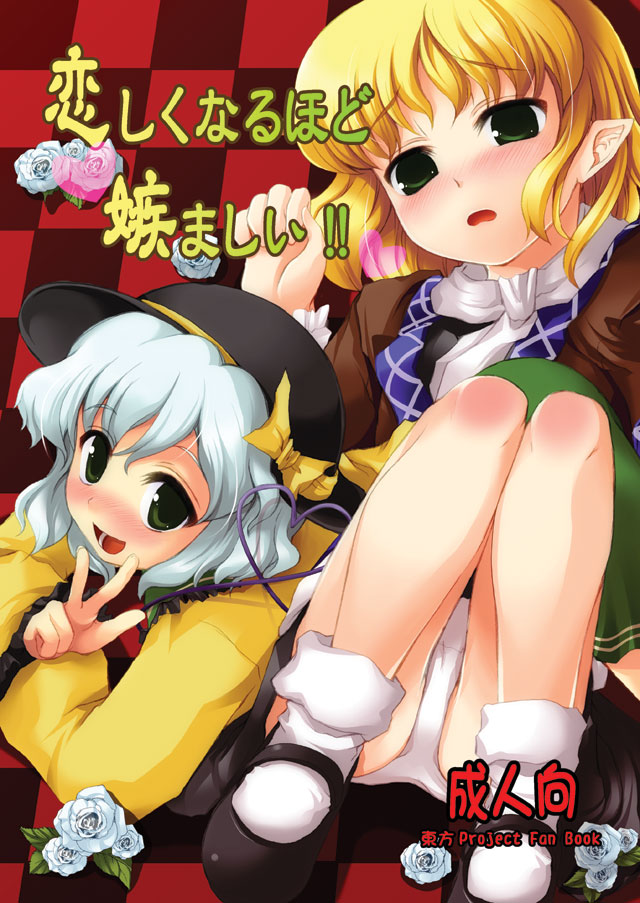 2girlsblonde hairblushcoverfemale focusflowergreen eyeshatmultiple girlspantiesplantribbonroseshort hairunderwearwhite hair