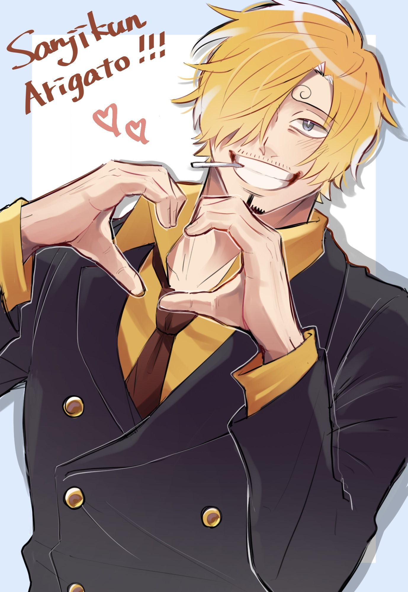 1boyblack jacketblonde hairbrown necktiecigarettecurly eyebrowsdrop shadowfacial hairgoateegrey eyeshair over one eyeheartheart handsjacketlong sleeveslooking at viewermale focusmustache stubblenecktieromaji textshirtshort hairsmokingsolostubbleupper bodyyellow shirt