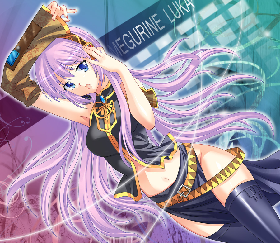 1girlarmbandarms upblue eyesdetached sleevesfemale focusheadsetlong hairpink hairsolothighhighsvery long hair