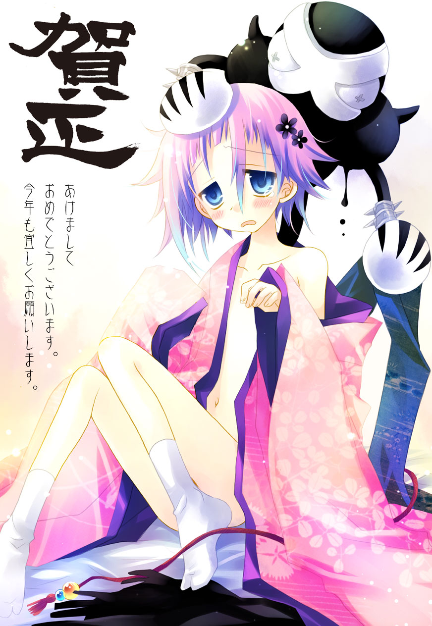 00s1boyandrogynousblack skinblue eyesblushcollarbonecolored skindrippingflowergauntletsgradient hairhair flowerhair ornamentjapanese clotheskimonomulticolored hairnaveloff shoulderopen mouthpink hairpurple hairshort hairsittingsocksspikestearstwo-tone hairyou gonna get raped