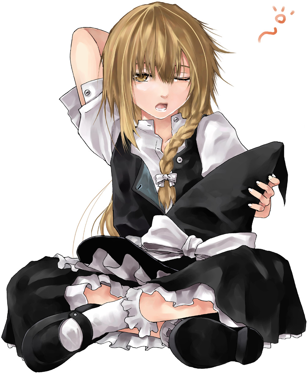 1girlblonde hairbraidfemale focushatlong hairone eye closedopen mouthsleepysolowinkwitchwitch hatyawningyellow eyes