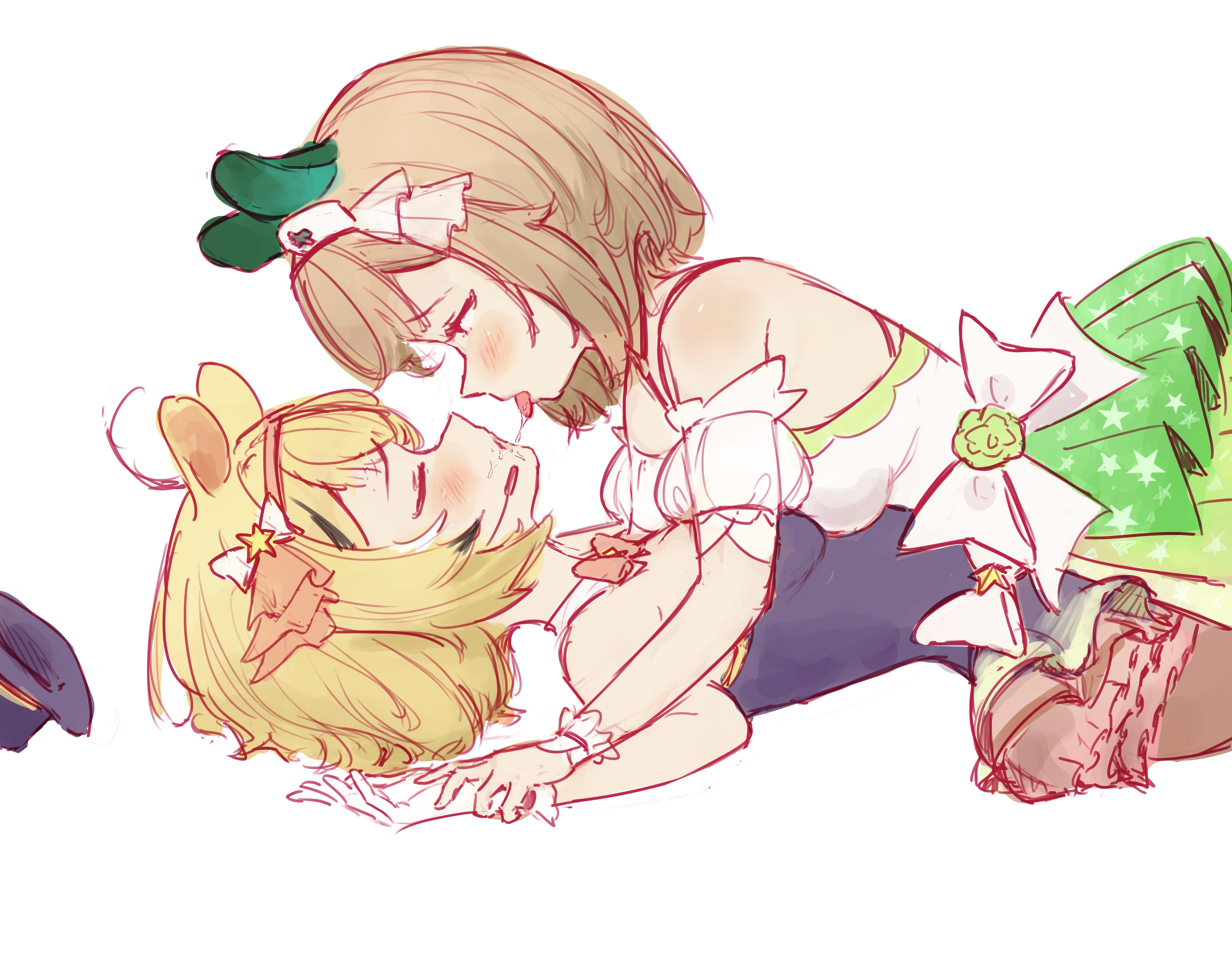 2girlsanimal earsbare shouldersblonde hairbreastsmouse earsmultiple girlssalivasaliva trailtapir earsvirtual youtuberyuri