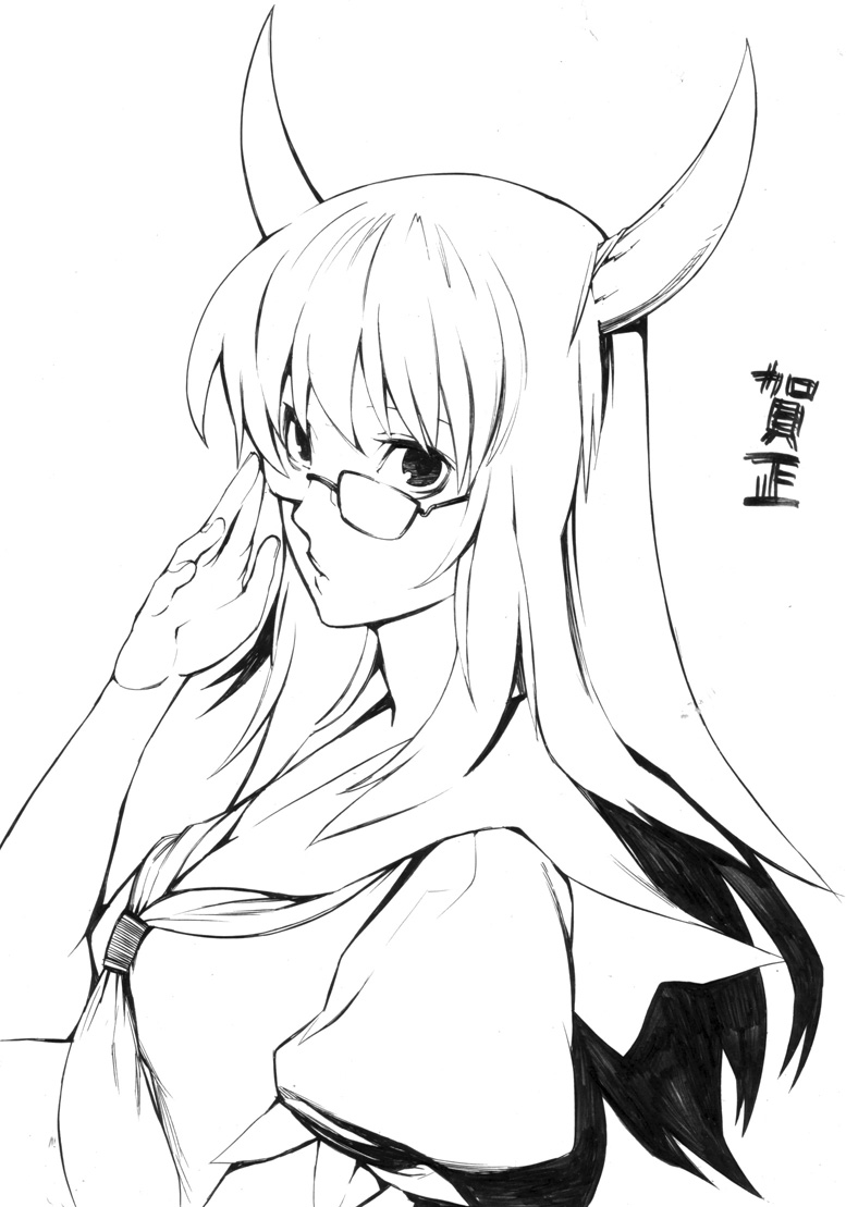 1girlalternate costumebespectacledfemale focusglassesgreyscalemonochromeschool uniformserafukusoloupper bodywhite background