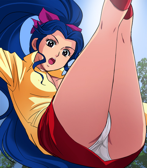 gucchiann, shinatsu (princess connect!), princess connect!, commentary request, highres, translation request, 1girl, blue hair, blue kimono, blush, breasts, cleavage, cleavage cutout, clothing cutout, eyes visible through hair, flying sweatdrops, hand to own mouth, hand up, horns, japanese clothes, kimono, long hair, looking at viewer, medium breasts, obi, off shoulder, parted bangs, red eyes, sash, solo, upper body, very long hair