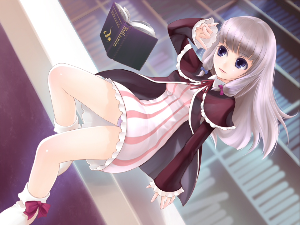 bshi edayo, miracle nikki, nikki (series), 1girl, apron, bare shoulders, beads, bib collar, blueberry, bow, bow legwear, buttons, cake, cake manor (miracle nikki), cake slice, cherry print, choker, collar, cupcake, dessert, dot nose, dress, dress bow, food, food-themed clothes, food-themed hair ornament, food print, fork, frilled apron, frilled choker, frilled collar, frilled dress, frilled wrist cuffs, frills, fruit, fruit print, full body, hair between eyes, hair bow, hair ornament, happy, high heels, holding, holding food, kneehighs, licking, licking finger, light particles, lolita fashion, looking at viewer, loose socks, low twintails, macaron, mini person, minigirl, pink dress, pink eyes, pink shoes, pink wrist cuffs, plaid clothes, plaid dress, plate, pleated dress, pumps, red bow, red choker, shadow, shoes, short dress, short twintails, sitting, sleeveless, sleeveless dress, socks, solo, strawberry, tart (food), twintails, wariza, white apron, white collar, white socks, wrist bow, wrist cuffs