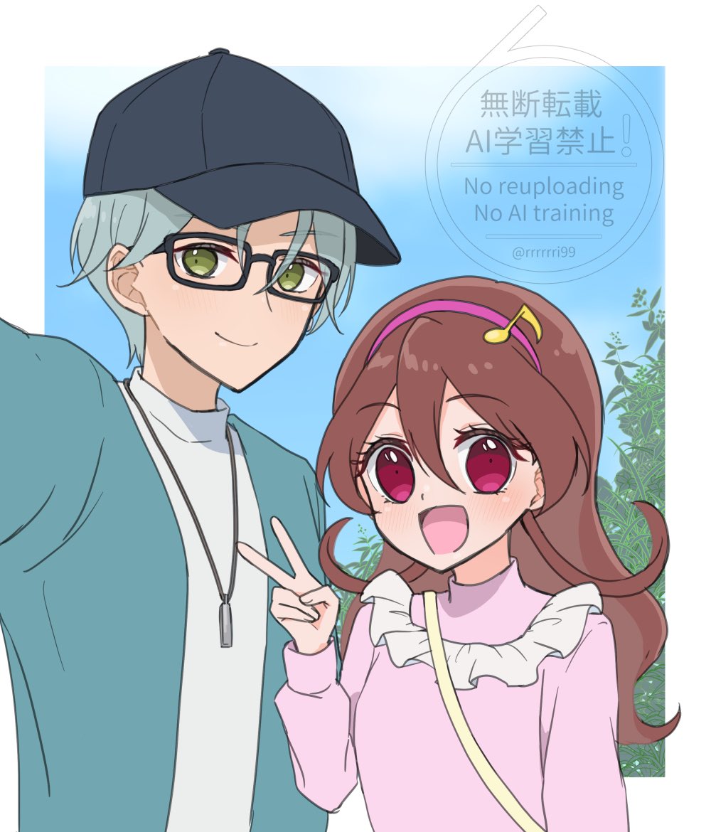 1boy1girlamusement parkbagbaseball capblack hatblue skyblushbrown haircardiganclosed mouthcoupledatingflirtingfortissimofrilled shirtfrillsglassesgreen eyesgreen hairhair between eyeshair ornamenthairbandhatheadbandheight differencejewelrylong hairlong sleevesmusical notemusical note hair ornamentnecklaceopen cardiganopen clothesparted bangspicture framepink hairbandpink shirtred eyesselfieshirtshort hairshoulder bagskysmiletwitter usernameupper bodyvwatermark