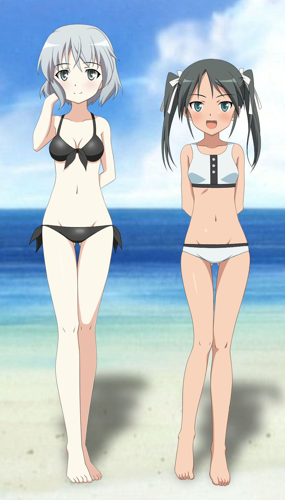 00s2girlsbarefootbeachbikiniblack hairblushbreastscleavageclouddayfangfeetflat chestfront-tie topgreen eyesgroinlowleglowleg bikinimidriffmultiple girlsoutdoorsshort hairside-tie bikini bottomsmall breastssmilesports bikinistandingswimsuittankinithigh gapthighstwintailswater