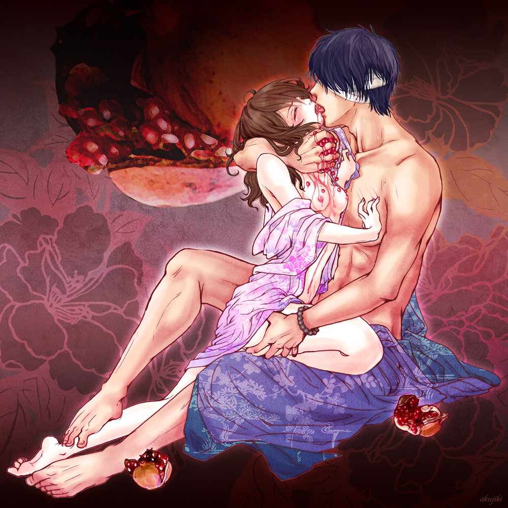 1boy1girlsbandagebreastsbrown hairfemaleFlag for Deletionfoodfruitmalenipplespurple hairshinsuke takasugismall breasts