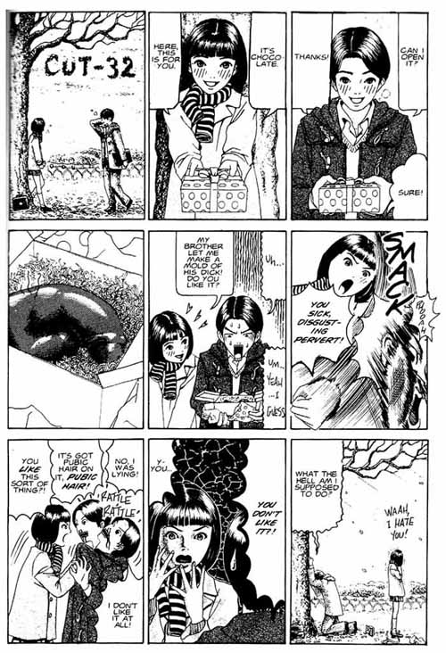 miyata sou, igarashi kasumi, maid in oshigoto, upset, game cg, 1girl, :o, black hair, blue eyes, blush, breasts, double bun, embarrassed, female focus, glasses, hair bun, hanging breasts, huge breasts, leaning forward, locker, locker room, nipples, panties, short hair, solo, surprised, topless female, underwear, vending machine, white panties