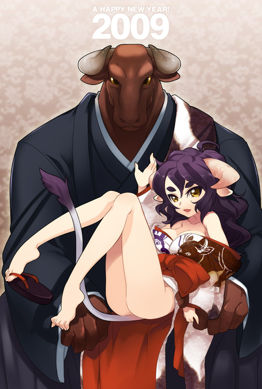 00s1boy1girl2009barefootbetween legsbullcarryingcow girlfeetgetahornsjapanese clotheskimonominotaurnew yearprincess carrysandalsshoe dangleshoessingle shoetailtail between legsthick eyebrows