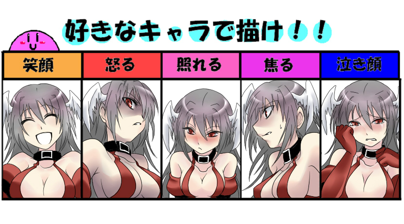 1girlblushbreastscenter openingchartchokercleavagecleavage cutoutclosed eyesclothing cutoutcollarelbow glovesfemale focusglovesgrey hairhalterneckhead wingslarge breastslong hairopen mouthred eyessolotearswings