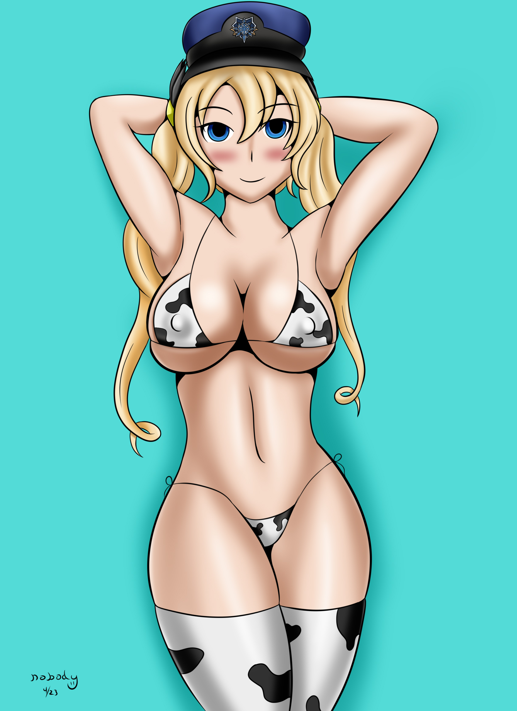 rickhime38, kitazawa shiho, idolmaster, idolmaster million live!, absurdres, highres, 1girl, animal ear hairband, animal ears, arm up, bikini, breasts, closed mouth, collared shrug, cowboy shot, fake animal ears, gluteal fold, grey background, greyscale, hairband, long hair, long sleeves, monochrome, rabbit ear hairband, rabbit ears, reverse bunnysuit, reverse outfit, shrug (clothing), simple background, solo, standing, sweat, swimsuit, thighhighs