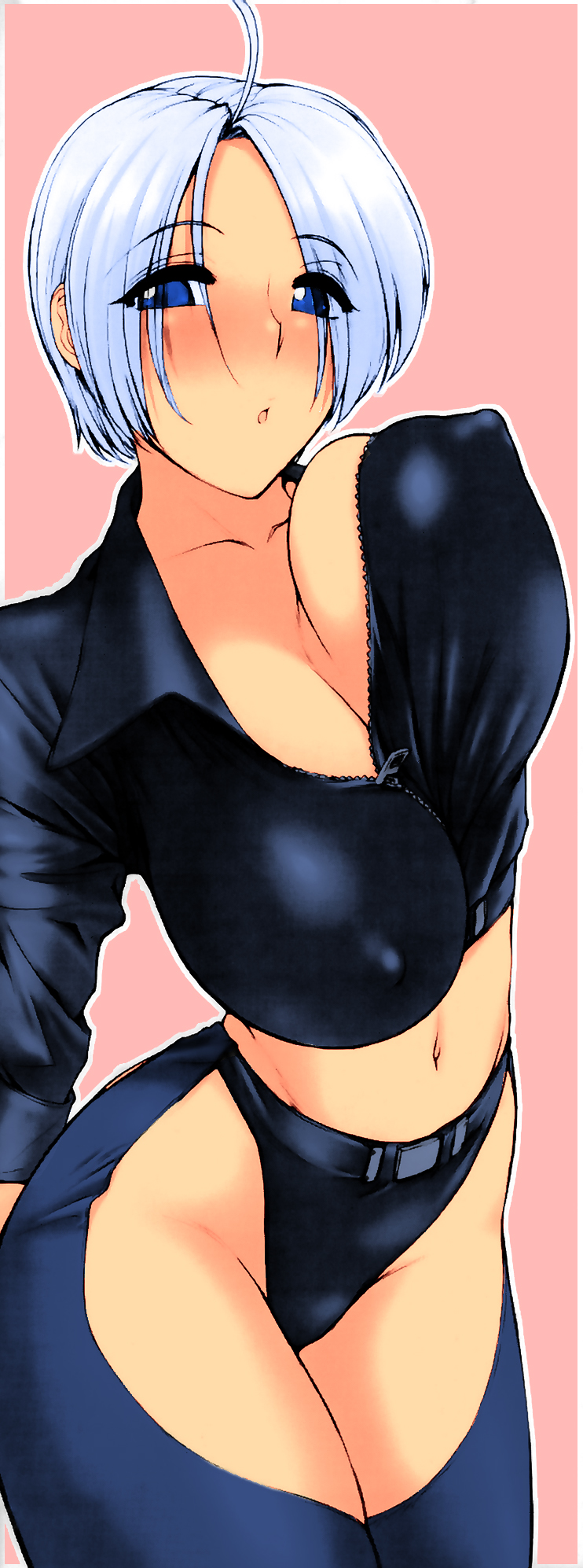 yamashita shun'ya, sweet dreams, absurdres, highres, 1girl, armlet, armor, black hair, breasts, cleavage, dagger, female focus, full body, hand on own hip, high ponytail, hip focus, jewelry, knife, long hair, ponytail, simple background, solo, standing, thighlet, weapon, white background, wide hips