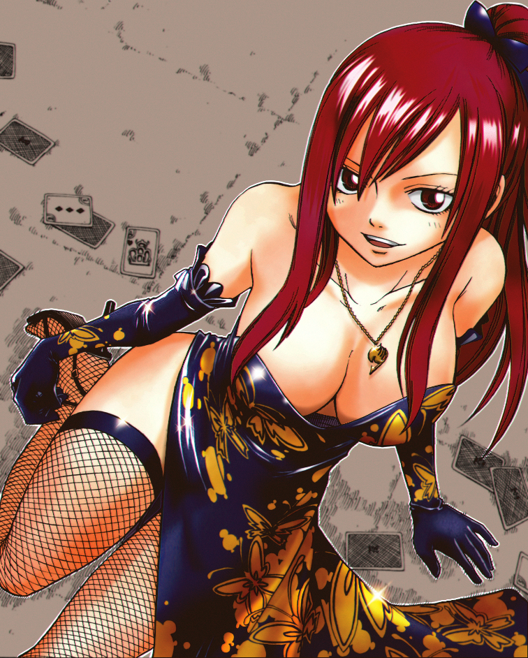 00s1girlbare shouldersbreastschromatic aberrationcleavagedownblousedresselbow glovesfemale focusfishnet thighhighsfishnetsgloveshigh heelsjewelrylarge breastslong hairnecklaceponytailred hairshoessolothighhighs