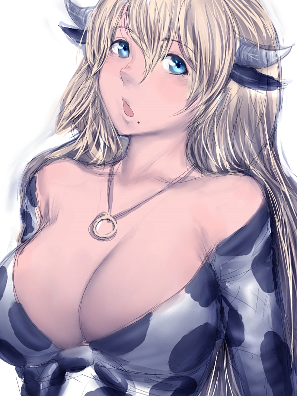 tab head, shu (arknights), arknights, absurdres, commentary request, highres, translation request, 1girl, bare shoulders, blue eyes, blue hair, blush, breasts, dragon girl, dragon horns, earrings, hair intakes, horns, jewelry, long hair, looking at viewer, multicolored hair, off shoulder, open mouth, pointy ears, small breasts, solo, strapless