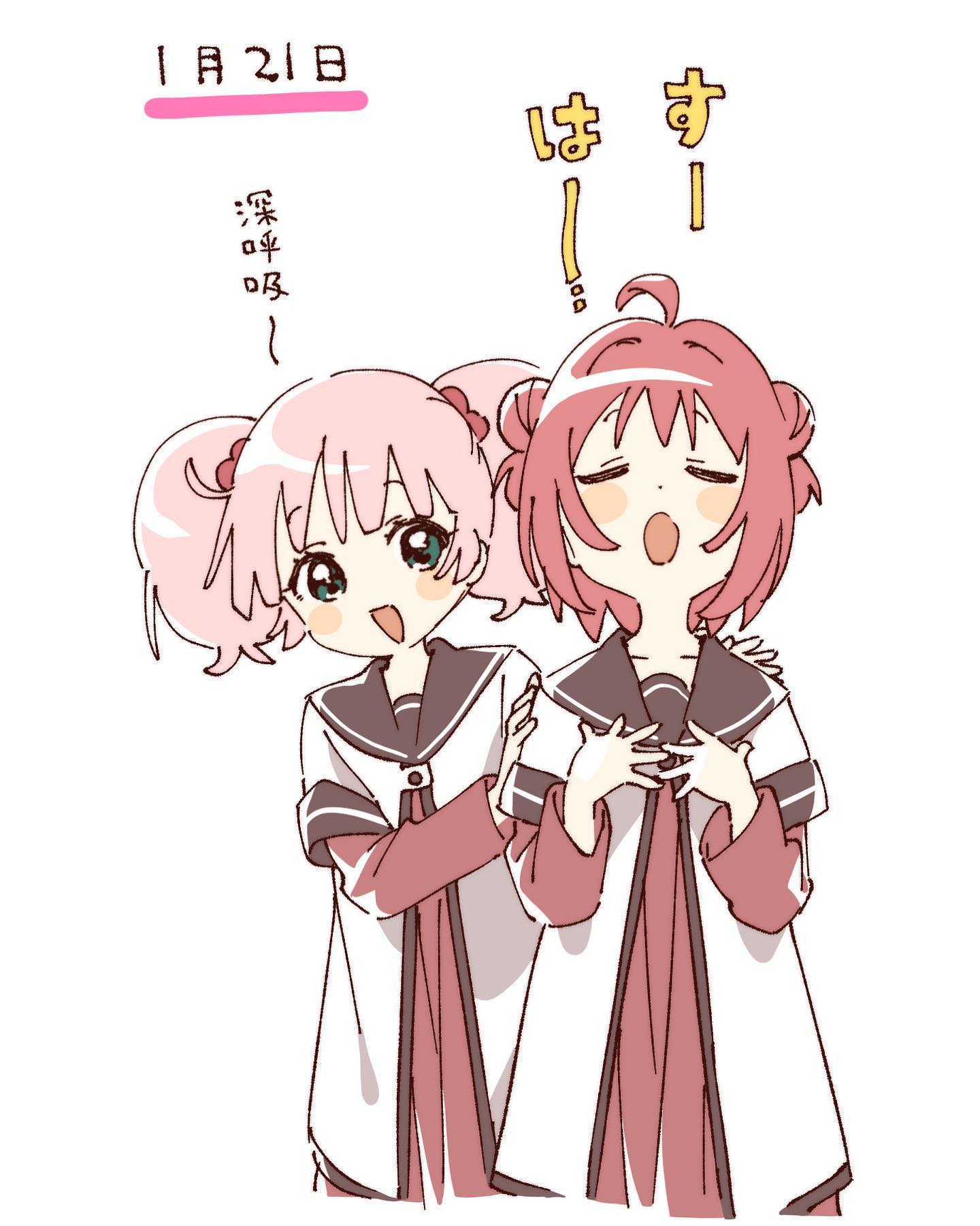 :d:o2girlsahogeblush stickersbrown sailor collarclosed eyescropped torsodot nosedouble bundressgreen eyeshair bobbleshair bunhair ornamentlayered sleeveslong sleevesmultiple girlsnanamori school uniformopen mouthpink hairpleated dressred dressred hairsailor collarschool uniformserafukushirtshort hairshort over long sleevesshort sleevesshort twintailssimple backgroundsmiletwintailswhite backgroundwhite shirtwinter uniform