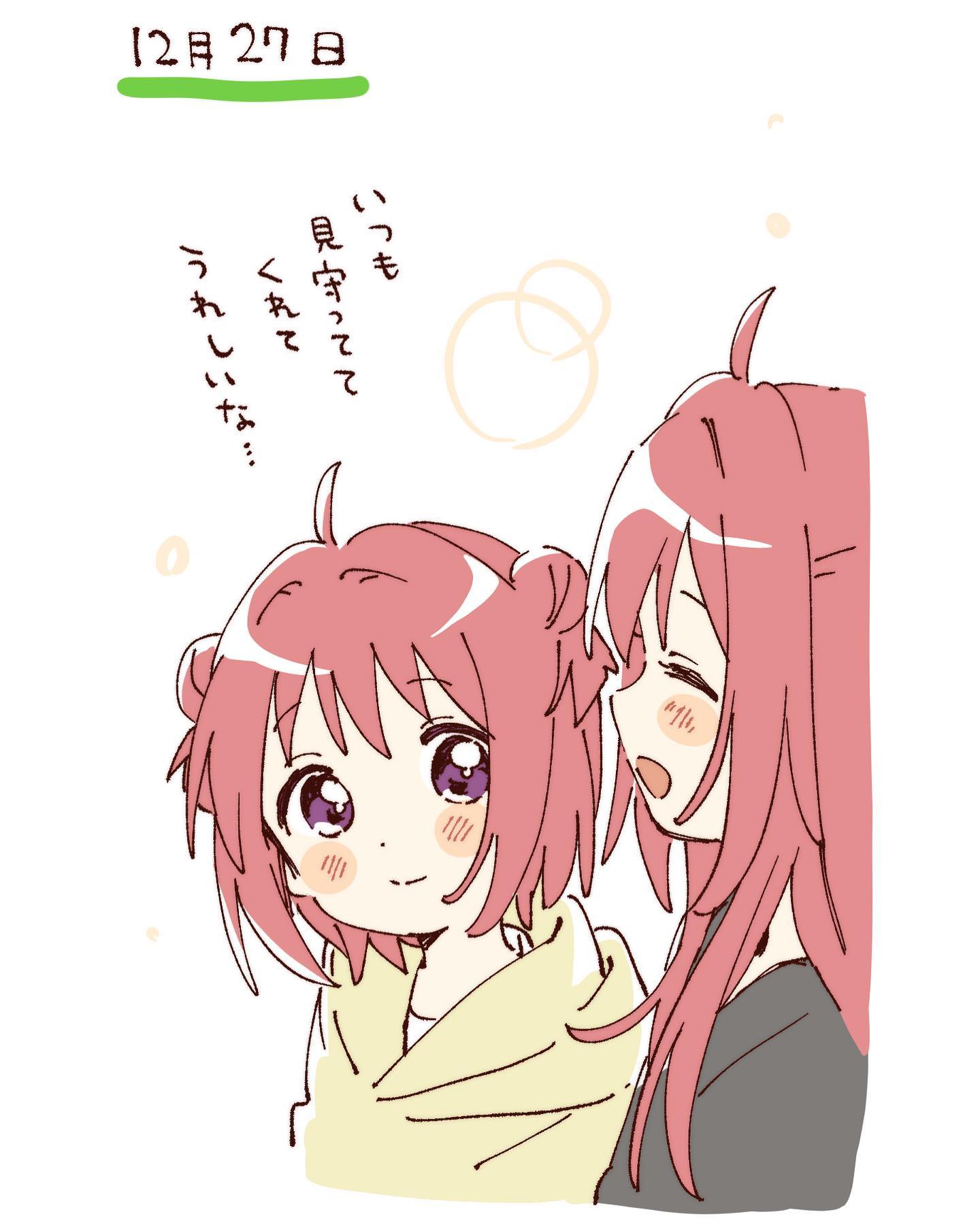 :d1boy2girlsahogeblack shirtblush stickersclosed eyesclosed mouthcropped torsodouble bunhair bunhoodhood downhoodielong hairlooking at anothermultiple girlsopen mouthpurple eyesred hairshirtshort hairsiblingssimple backgroundsisterssmilewhite backgroundyellow hoodie