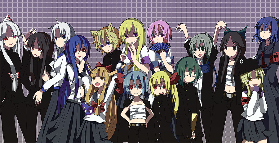flandre scarletfujiwara no mokouhinanawi tenshihouraisan kaguyaibuki suikakomeiji koishimoriya suwakoreiuji utsuhoremilia scarletsaigyouji yuyukoshiki eikiyagokoro eirinyakumo ranyakumo yukariyasaka kanako