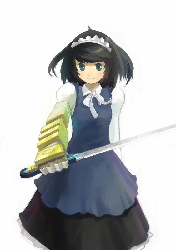 bbabbamis2, adashino adami, mr. machete, homicipher, commentary request, highres, korean commentary, translation request, 1boy, 1girl, bandaged head, bandages, crowbar, explosion, hair over one eye, holding, holding crowbar, hood, hood down, korean text, long hair, raincoat, red eyes, ringed eyes, sharp teeth, spot color, teeth, very long hair, white background