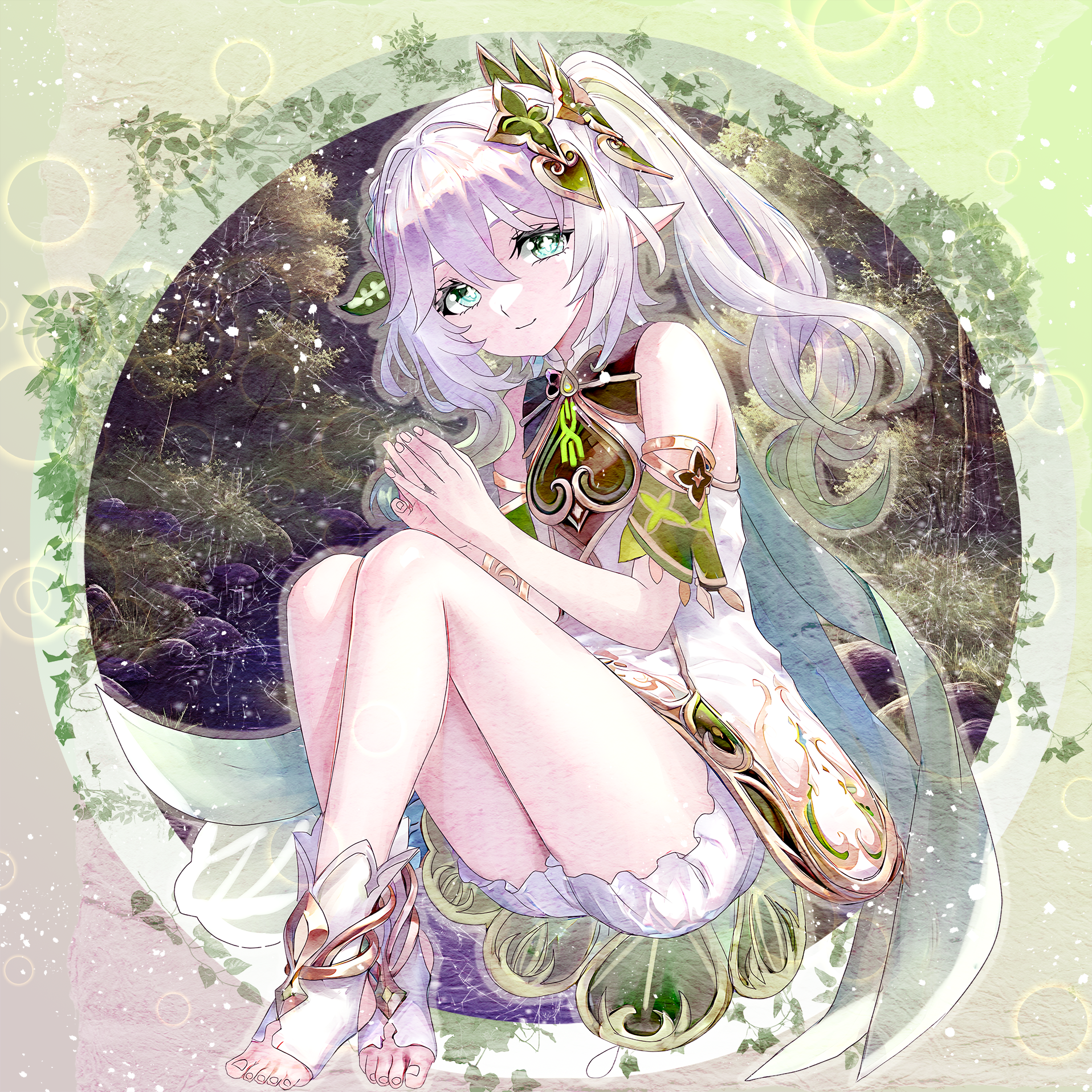 achiki, original, highres, 1girl, barefoot, closed mouth, floating hair, grey skirt, holding, holding ribbon, long hair, night, outdoors, pleated skirt, red ribbon, reflection, reflective water, ribbon, sailor collar, school uniform, serafuku, shirt, short sleeves, skirt, solo, standing, wading, walking, water, white shirt, white skirt