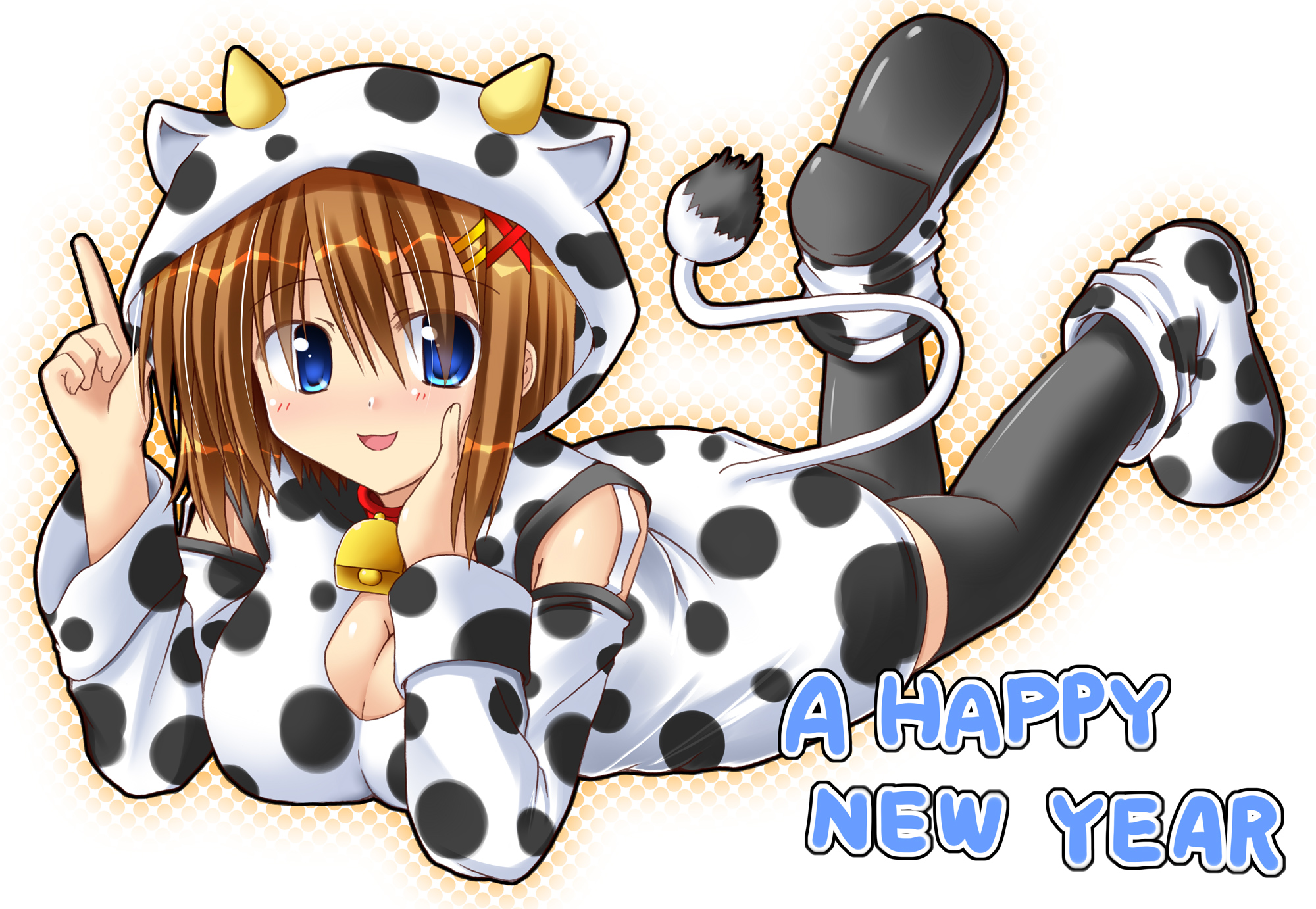 deno (denomina0), dantsu flame (umamusume), umamusume, commentary request, highres, 1girl, alternate costume, animal ears, animal print, axe, belt, bikini, boots, bow, breasts, brown hair, cow print, cow print bikini, cow print thighhighs, ear covers, ear ribbon, ear tag, full body, holding, holding axe, holding weapon, horse ears, horse girl, horse tail, huge breasts, multicolored hair, pink belt, print bikini, print thighhighs, short hair, simple background, solo, standing, swimsuit, tail, thighhighs, two-tone hair, weapon, white background, white boots, white hair, white thighhighs