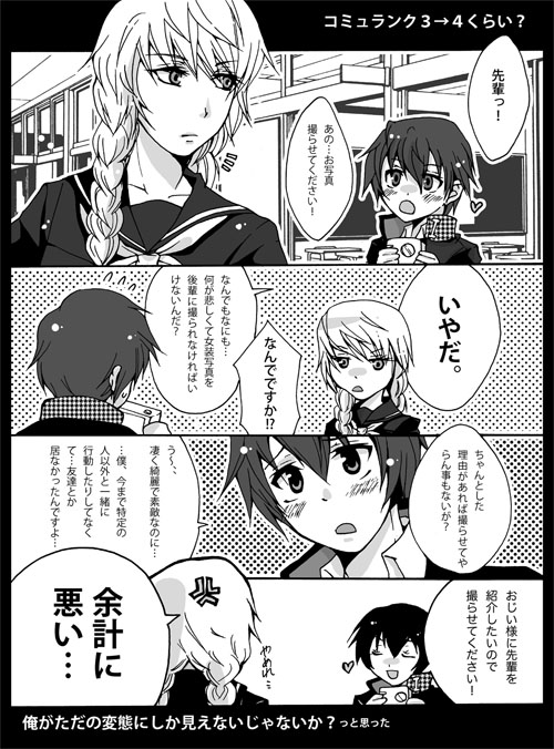 1boy1girlandrogynousanger veinblushcomiccrossdressinggreyscaleheartmonochromemultiple boysreverse traptrap