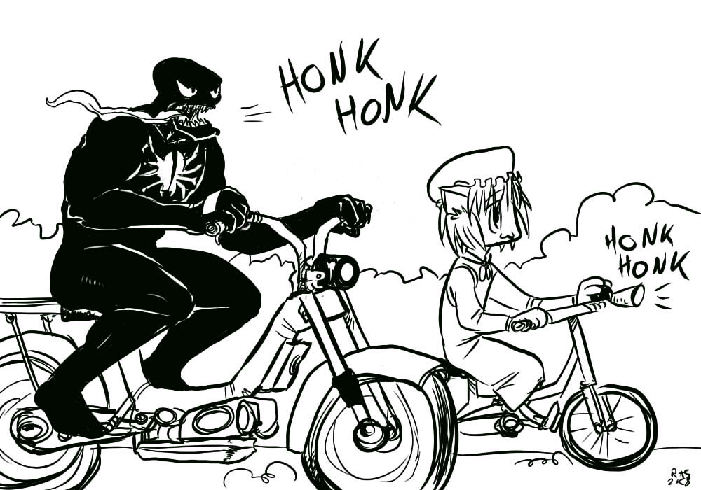 bicyclecrossoverhonk honk (meme)lineartlong tonguemonochromemotor vehiclemotorcycleparodysketchsymbiotetonguewhat