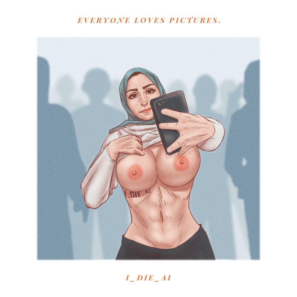 artist nameblue hijabcellphoneclothes liftenglish textflashinghijabholdingholding phonenavelnipplesphoneshirtshirt liftsmartphonewhite shirt