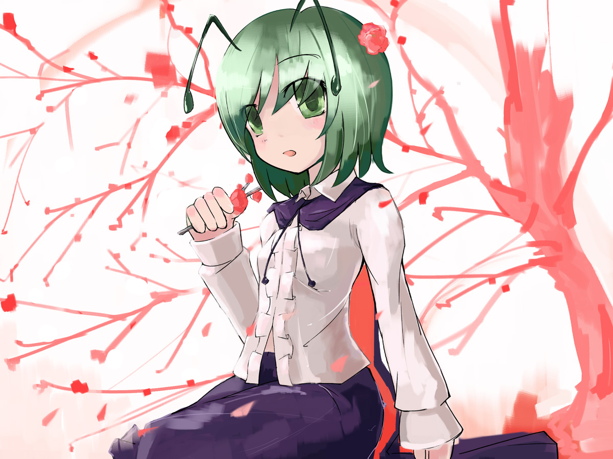 1girlantennaecapefemale focusgreen eyesgreen hairmatching hair/eyesnatureoutdoorsshort hairsolo