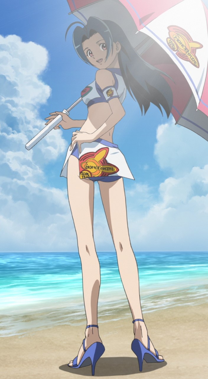 00s1girlahogeassbeachblue hairbrown eyesdayfemale focushigh heelslegslong hairlong legslooking backrace queenshadeshoesskysoloumbrella