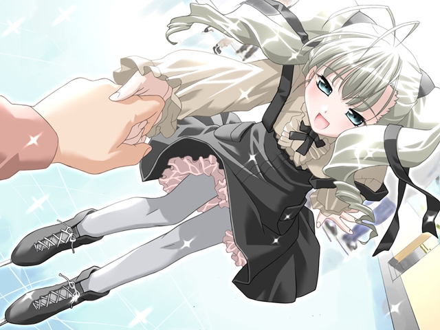 1girlblue eyesdraggingdressdutch anglefemale focusice skatingpantyhoseskatesskatingsolotwintailswhite hair
