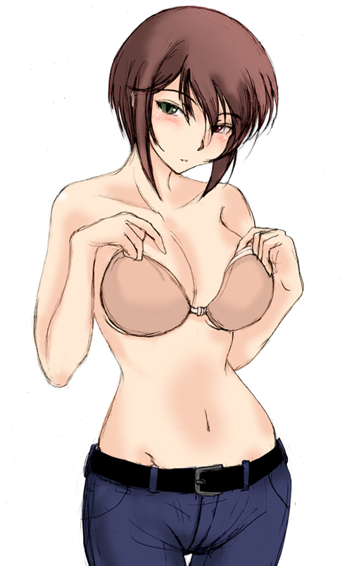 00s1girladhesive braaged upbeige brabeltbrabrown hairdenimfemale focusheterochromiajeanslingerienavelno shirtpantsshort hairsolostraplessstrapless braunderwear
