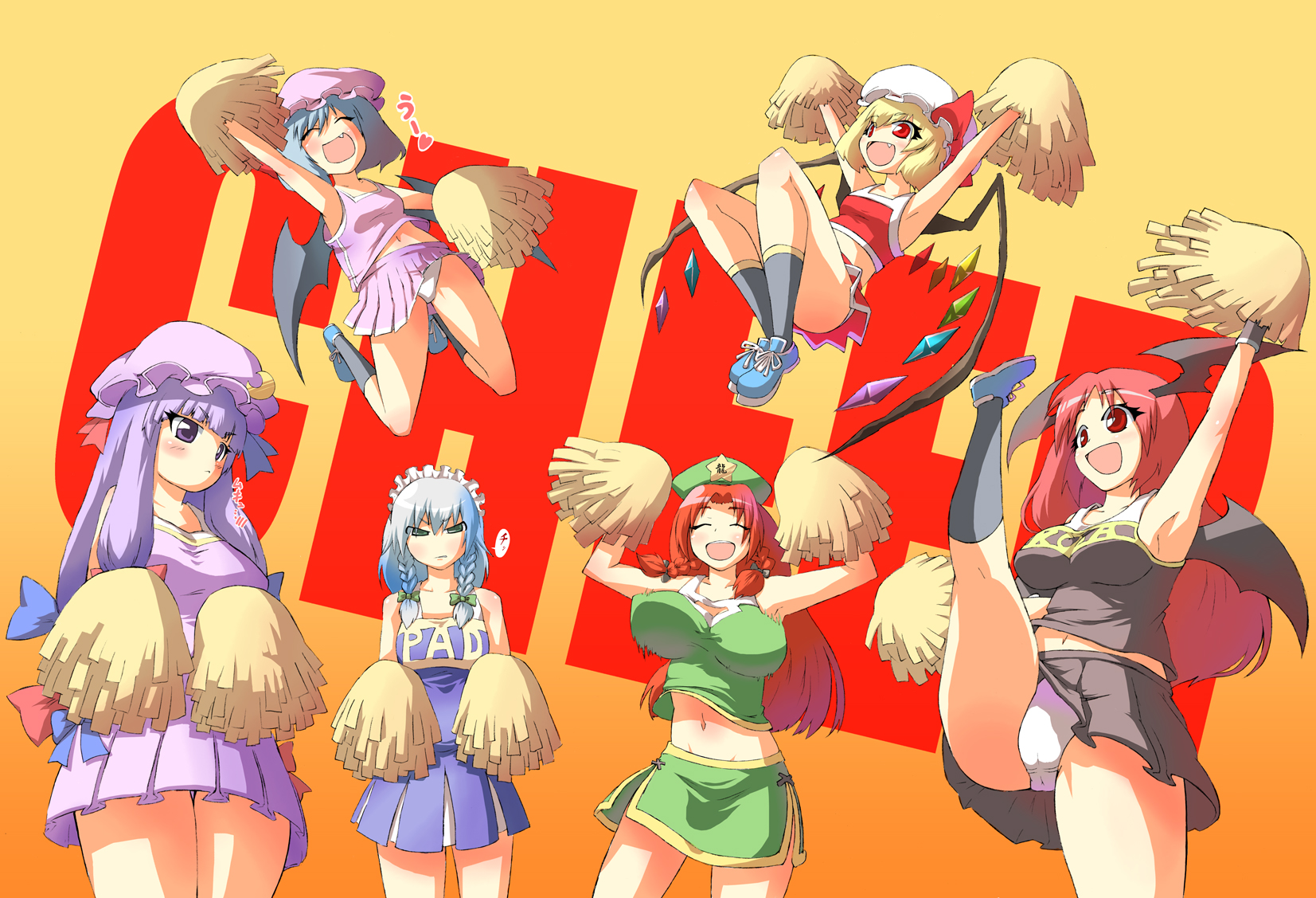 :d1boy6+girlsannoyedbat wingsblonde hairblue hairbouncing breastsbreast envybreastscameltoecheerleaderclosed eyesfangfemale focushairbandhathead wingshigh kickjumpingkickinglarge breastsmedium breastsmob capmultiple girlsopen mouthpantiespom pom (cheerleading)purple eyespurple hairred eyesred hairribbonsmall breastssmileunderwearwings