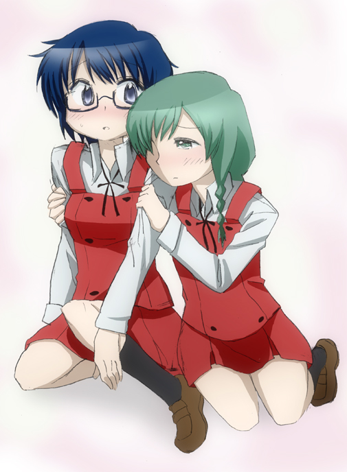 pokesudal, bonnie (pokemon), clemont (pokemon), nintendo, pokemon, pokemon (anime), pokemon xy (anime), absurdres, commentary request, highres, korean commentary, 1boy, 1girl, adjusting another's clothes, beanie, blonde hair, blush, brother and sister, closed eyes, cloud, coat, day, glasses, green hat, green scarf, grin, happy, hat, long sleeves, outdoors, pink coat, scarf, siblings, sky, smile, snow, snowing, teeth, tree, winter clothes