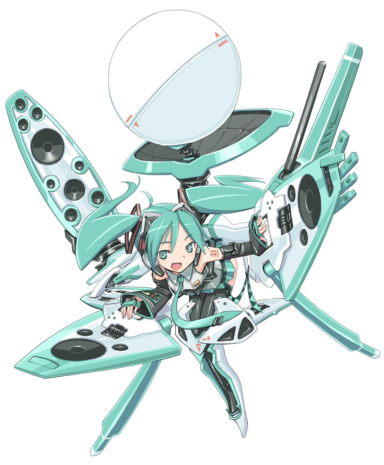 amplifieraqua eyesaqua hairdetached sleevesmechamecha musumenecktierobotskirtsolothighhighstwintails