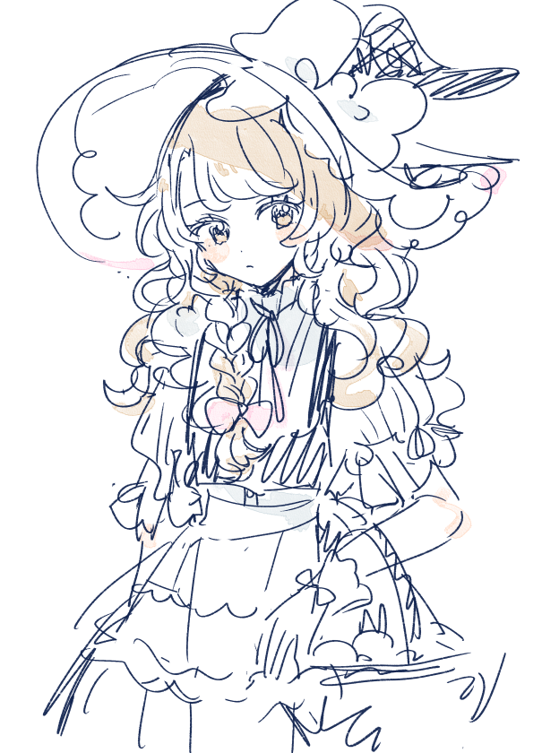 aerith gainsborough, final fantasy, final fantasy vii, final fantasy vii rebirth, final fantasy vii remake, highres, 1girl, architecture, braid, braided ponytail, cropped jacket, dress, facing away, fog, from behind, hair ribbon, hey53orz, lake, long dress, long hair, outdoors, ribbon, shell, short sleeves, single braid, sketch, solo, walking