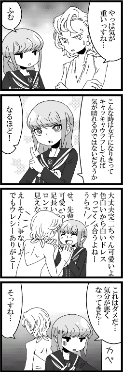 mari (omori), mari (spirit) (omori), omori, highres, spoilers, 1girl, :d, blood, blood on face, empty eyes, flat chest, grey background, greyscale, grin, hair over one eye, hair spread out, hand up, long hair, looking at viewer, lying, madai (si 202), monochrome, no pupils, on side, one eye covered, open mouth, shirt, simple background, smile, solo, spot color, upper body, very long hair